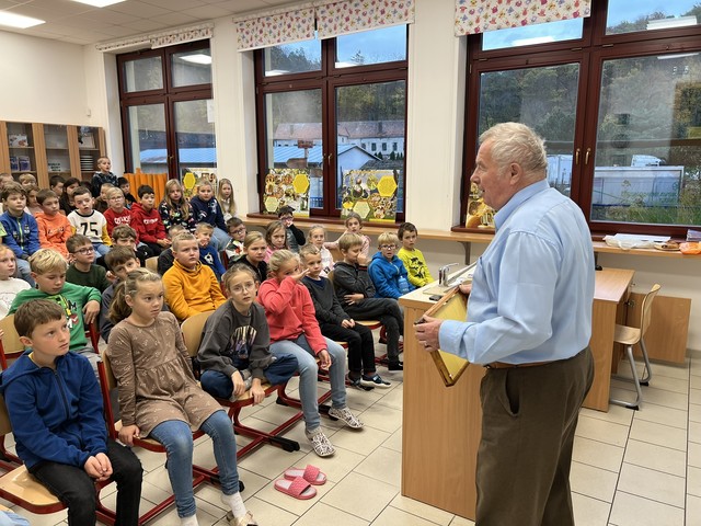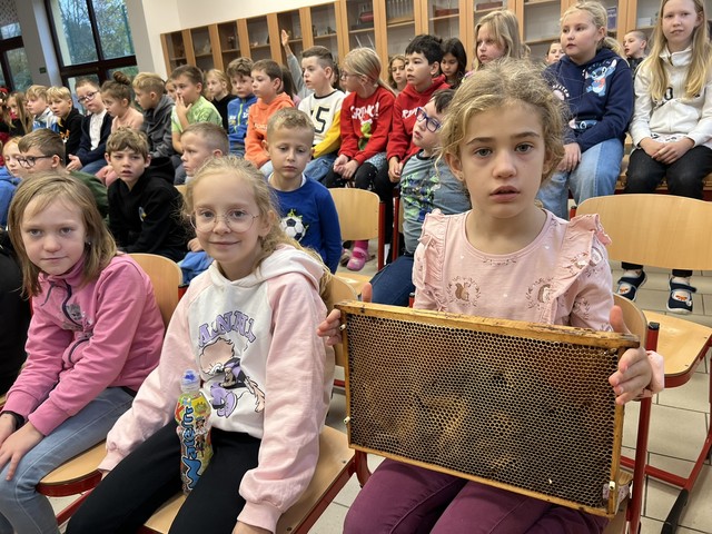 Setkání se zúčastnily děti z 2.- 4. ročníku a dozvěděly se mnoho zajímavého o životě včel. Děti také měly možnost klást různé otázky, na které jim pan včelař ochotné odpovídal. Děkujeme!